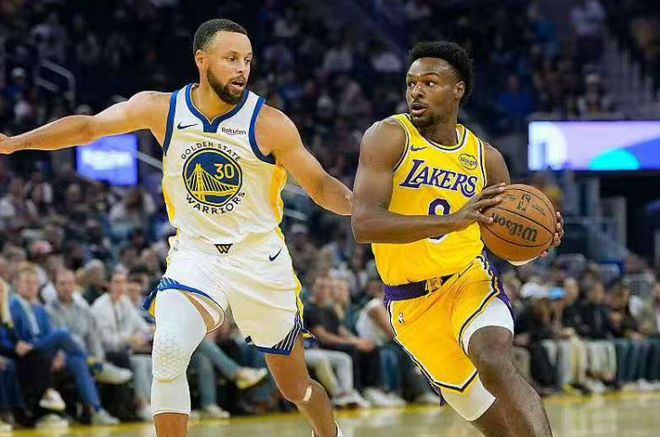 湖人和勇士的对决是令人期待的,两支球队有大量的球迷支持,充满了话题。但是今日的比赛,詹姆斯、东契奇、里夫斯全部缺阵,湖人的首发是是文森特、拉拉维亚、八村垒、艾顿、范德比尔特;勇士的首发是库里、巴特勒、格林、波杰姆斯基、穆迪。